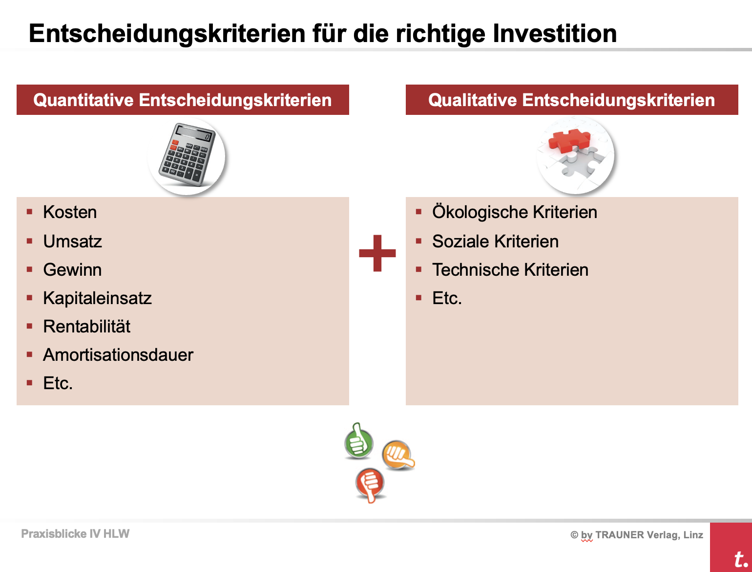 Investitionsarten S 35, Qualitative und quantitative Merkmale S38