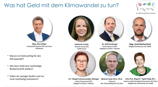 - Think about 3 questions per group, which you could ask on the 23rd of October in the evening discussion. "Was hat Geld mit dem Klimawandel zu tun")