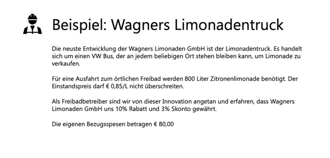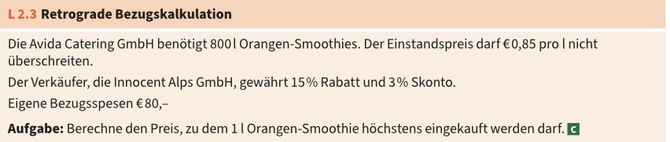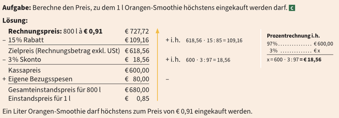 Aufgabe: Ermittel den Gesamteinstandspreis und den Preis pro kg.