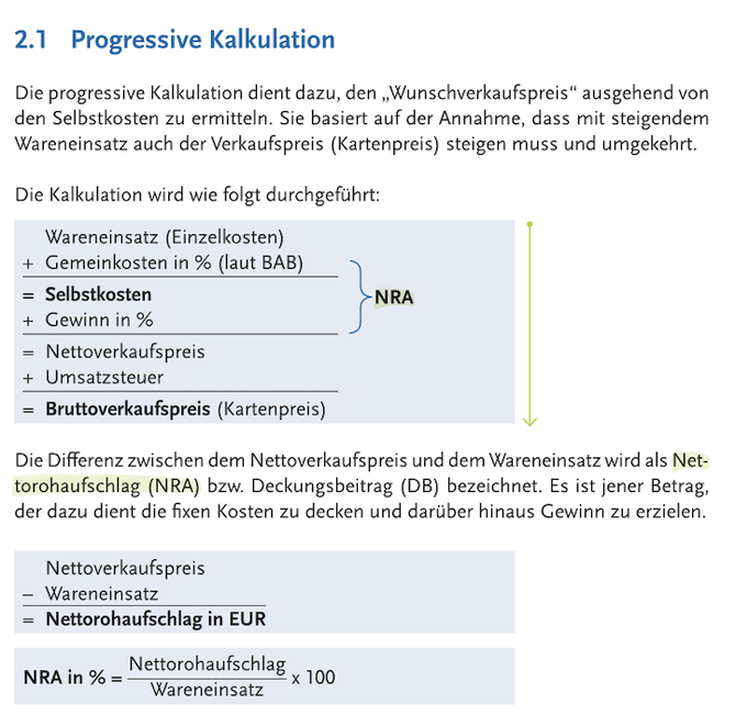 Kalkulation von Verkaufspreisen: progressiv und retrograd