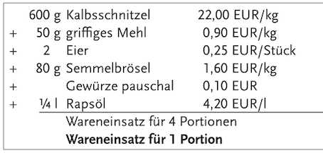 - Wareneinsatz kalkulieren (z.B. Wareneinsatz für ein Schnitzel berechnen)